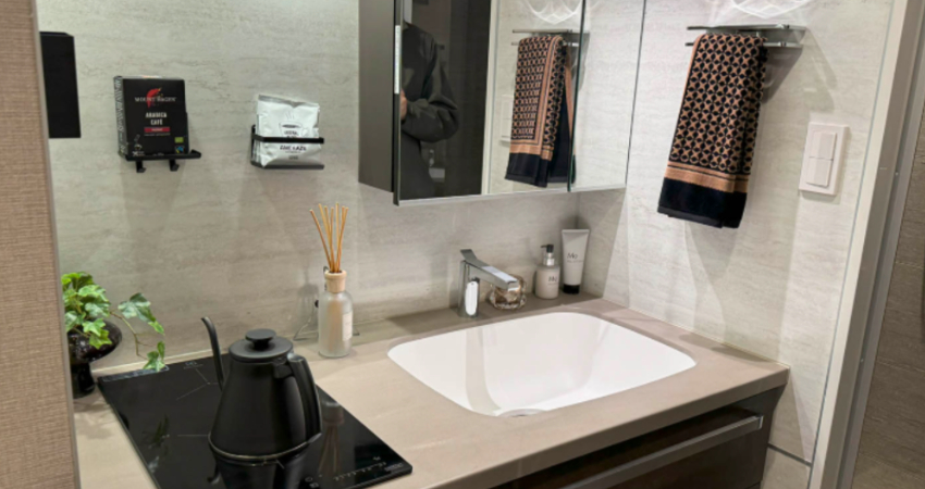 キッチンと洗面を合わせた最新スタイルは面積節約に役立ちます